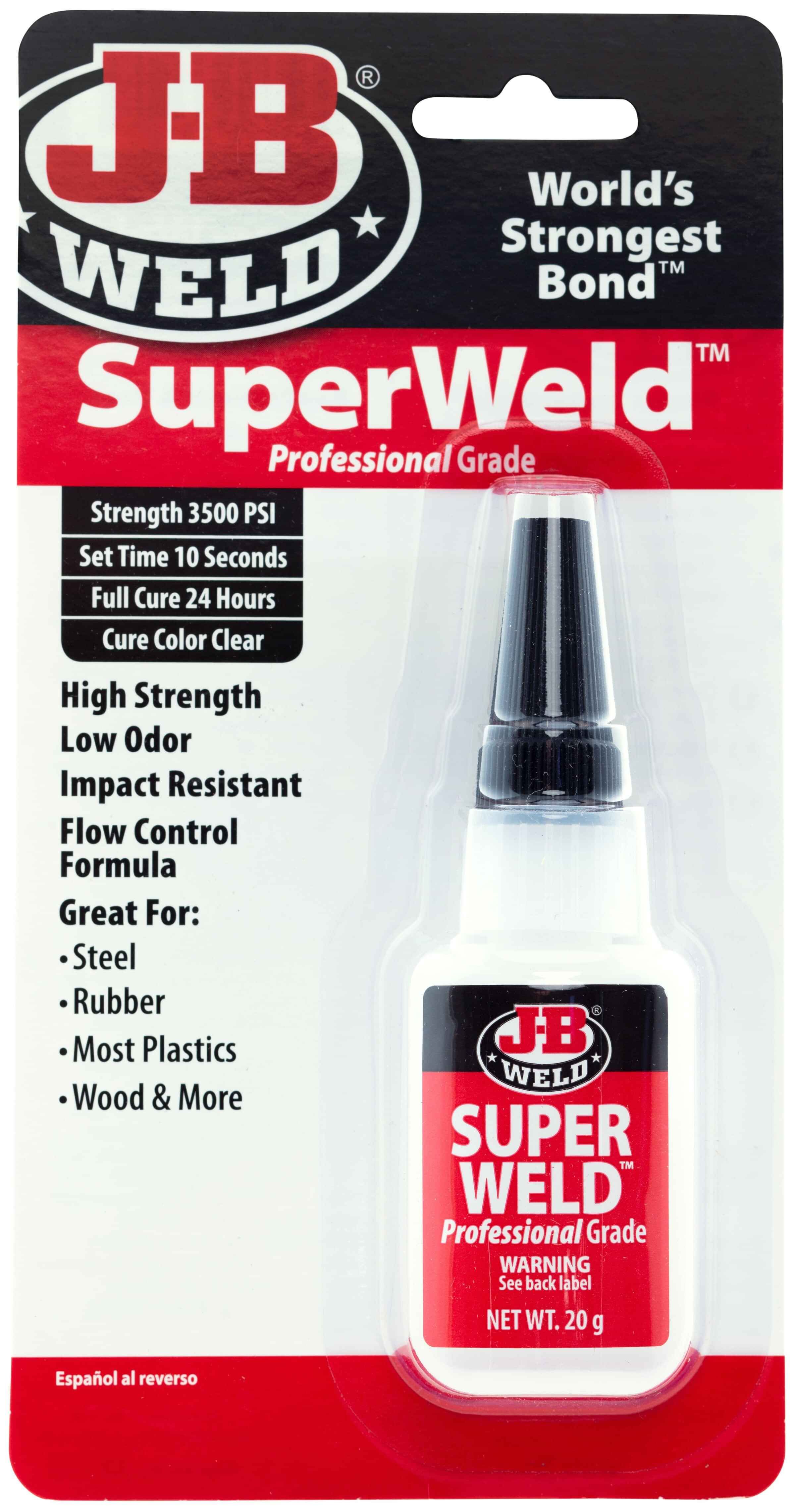 J-B Weld’s SuperWeld line offers innovative high-strength super glues. They’re easy to use, set quickly and are ideal for instant bonding on crafts, home and auto repairs and more.