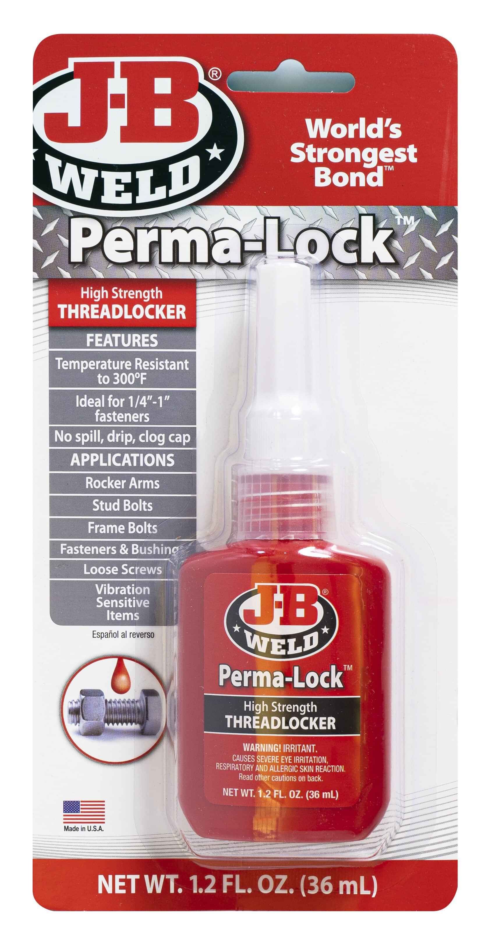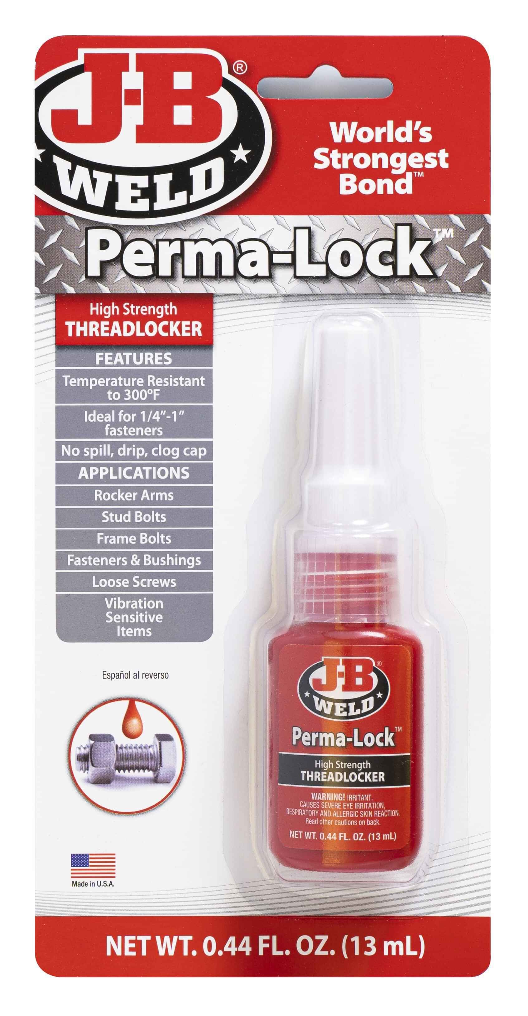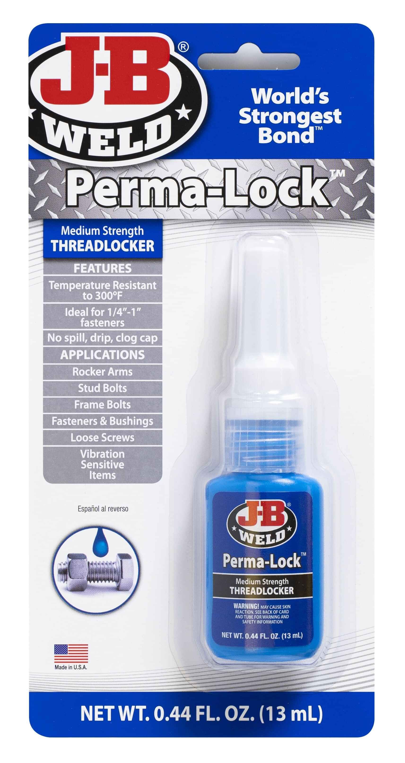 J-B Weld Threadlockers provide a reliable and superior lock and seal for threaded fasteners on all mechanical parts, body assemblies, and hundreds of other applications to prevent loosening of fasteners from shock and vibration.